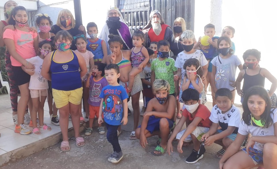 «Hola!!…bueno a pesar de estar viviendo algo especial con el COVID estamos juntando pequeños grupos y celebrando a los tan esperados Reyes ….renovando la alegría de los niños también renovamos nuestro compromiso de seguir trabajando por ellos en un año que se presenta lleno de desafios, ponemos todo en manos de Jesús y Maria ,confiando en su protección y rogando nos asistan con su incondicional amor…Damos gracias a todos los que nos apoyan, pedimos al Padre los bendiga y llene sus corazones de FE, ESPERANZA Y CARIDAD…les enviamos un gran abrazo lleno de agradecimiento». Juanita