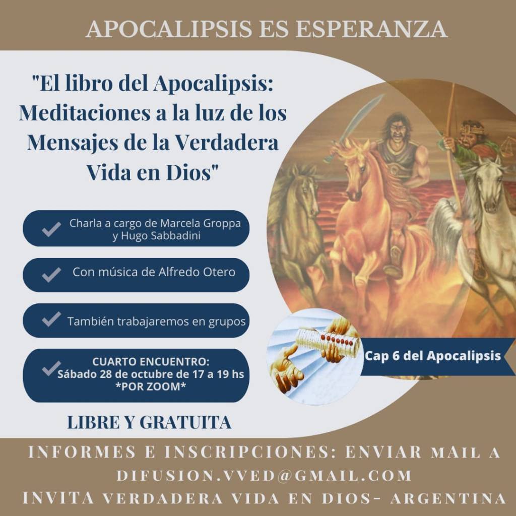 Será para tratar el capítulo 6 del Libro del Apocalipsis y como lo explica para nosotros Jesús mismo en los Mensajes de la Verdadera Vida en Dios.