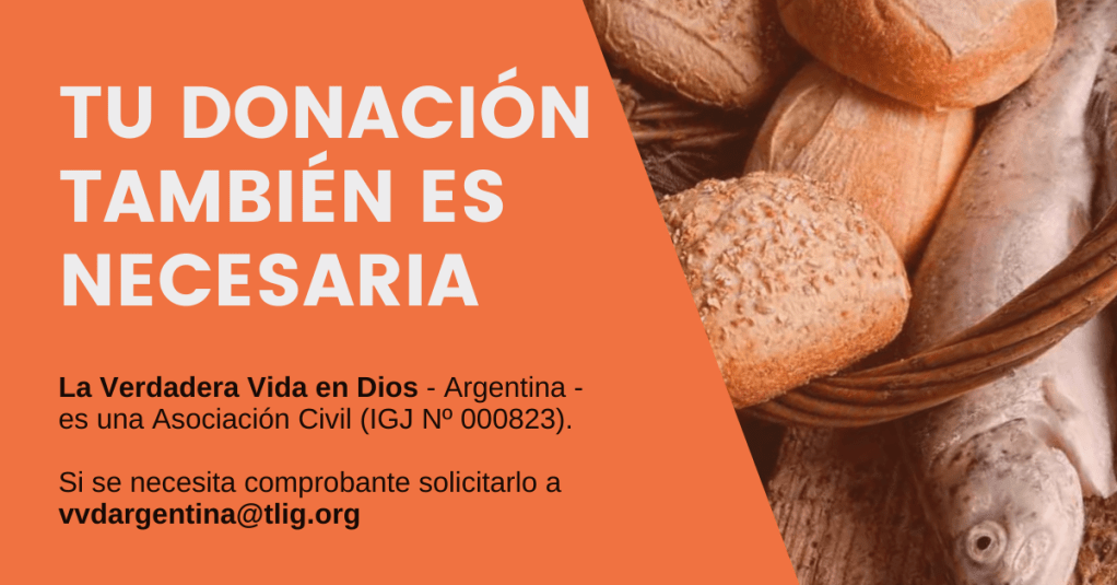 Las donaciones que la Asociación Argentina de la Verdadera Vida en Dios recibe por este medio, se destinan directamente a financiar la difusión de los Mensajes y el mantenimiento de este sitio.