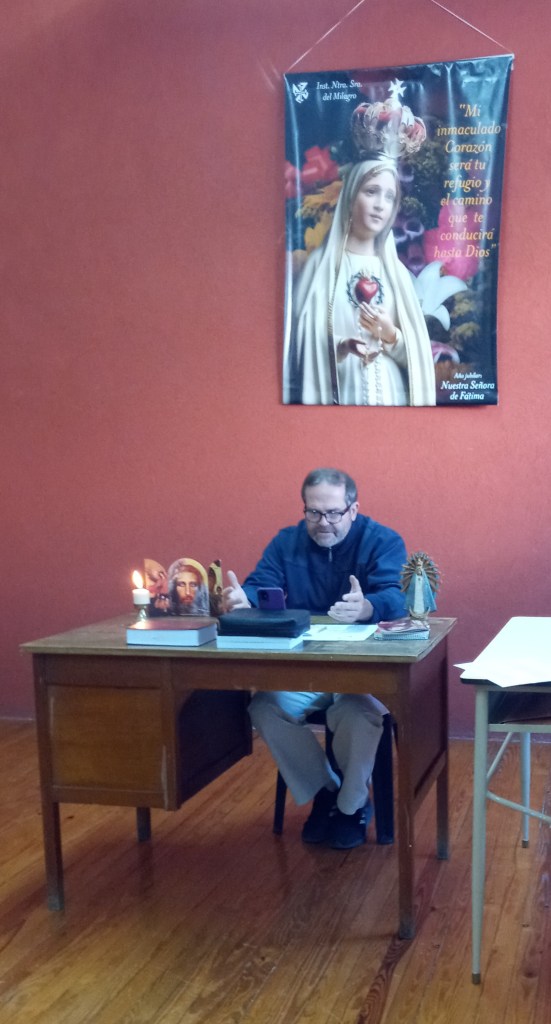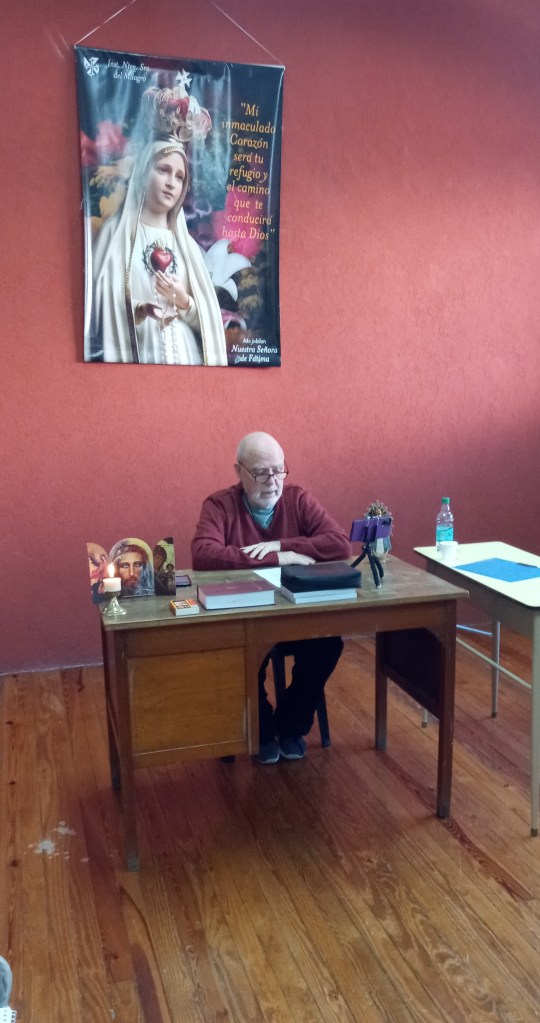 Luego de un intervalo de 60 minutos para el almuerzo, en un clima fraterno donde compartimos alimentos, pero también experiencias de vida, nos dividimos en tres grupos, incluyendo el virtual por zoom, para reflexionar sobre el mensaje del 20 de marzo de 1996 “La Mujer Revestida del Sol”.